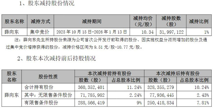 一个月前,东华软件实际控制人兼董事长薛向东才完成减持计划。相关公告显示,2025年10月15日至2026年1月13日,薛向东以集中竞价方式减持了3199.7122万股(占公司总股本的1%),减持均价为10.34元,套现金额超过3.3亿元。在此次减持后,薛向东直接持有东华软件的股份比例仍有10.24%。
